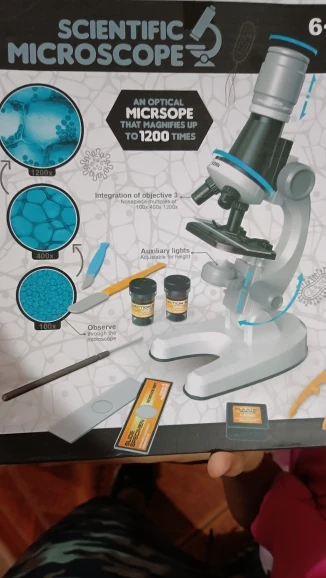 - Accessories: ABS (non-toxic, does not include glass, blades or other sharp implements) - Magnification levels: 100×, 400×, 1200×
